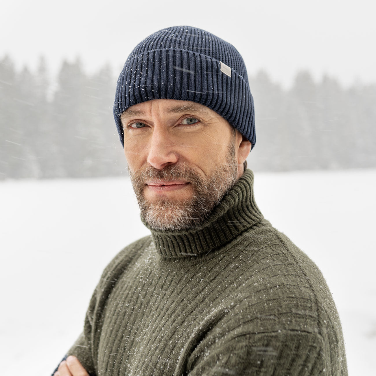 • Ourlet à revers extra large : Orné d'une étiquette décorative et conçu avec des côtes légèrement plus larges, il protège efficacement les zones sensibles du visage et de la tête contre le vent et le froid.