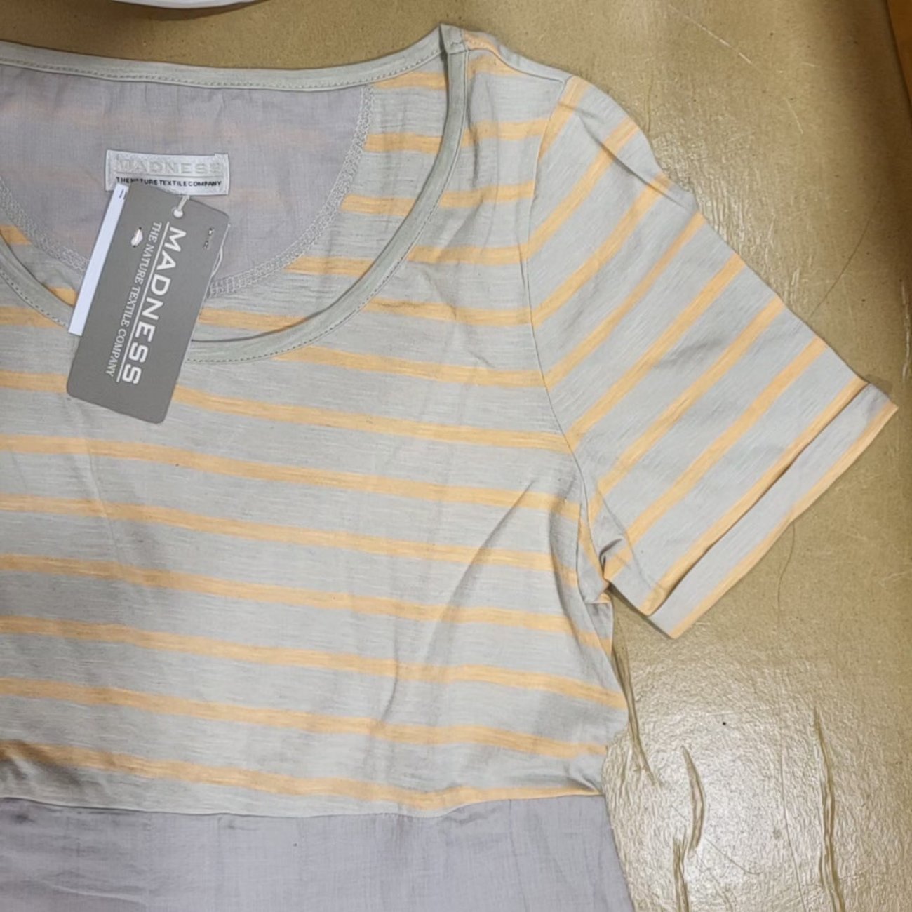 • Haut comme un t-shirt, encolure ronde, bas de manches à revers